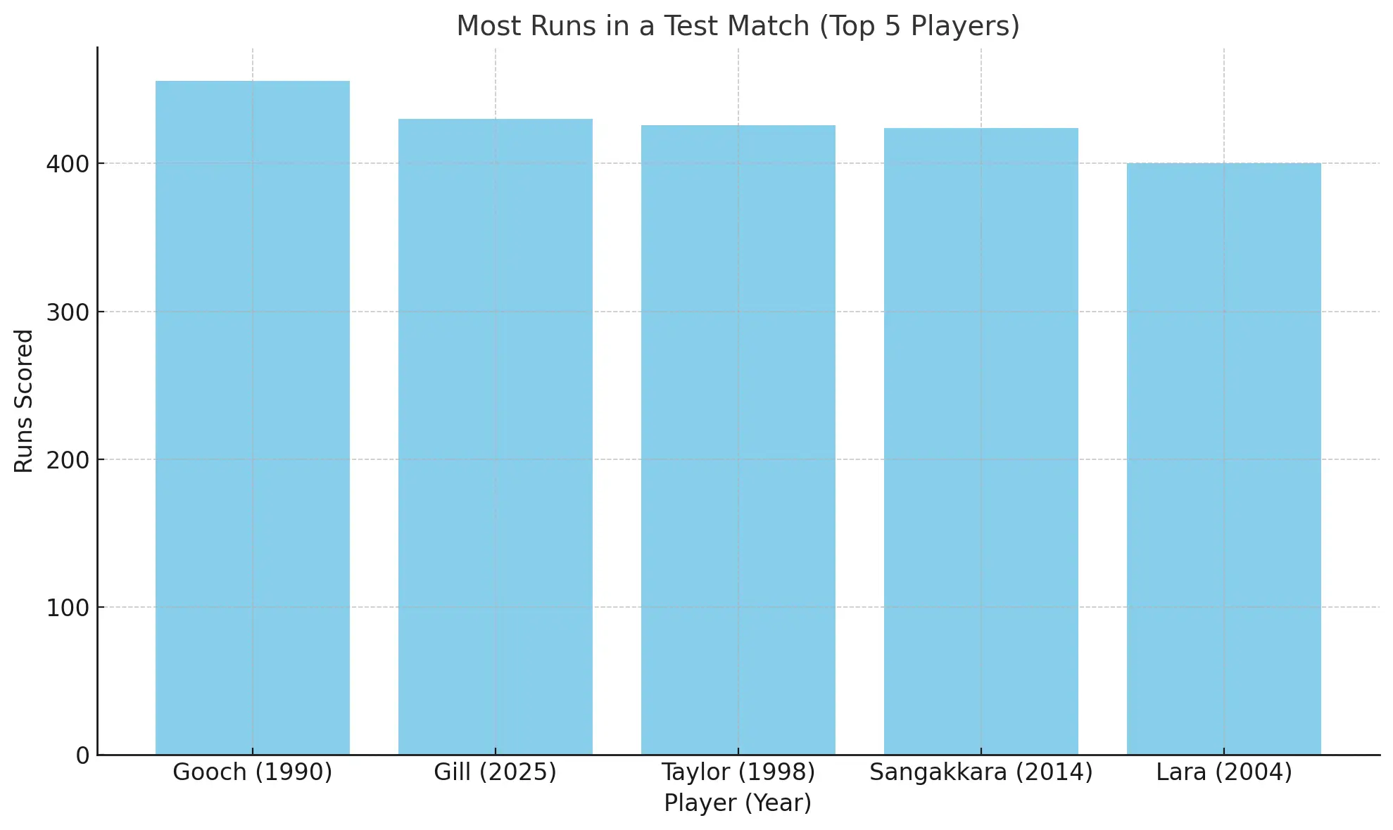 Shows Shubman Gill’s 430-run match alongside legends like Gooch and Lara.