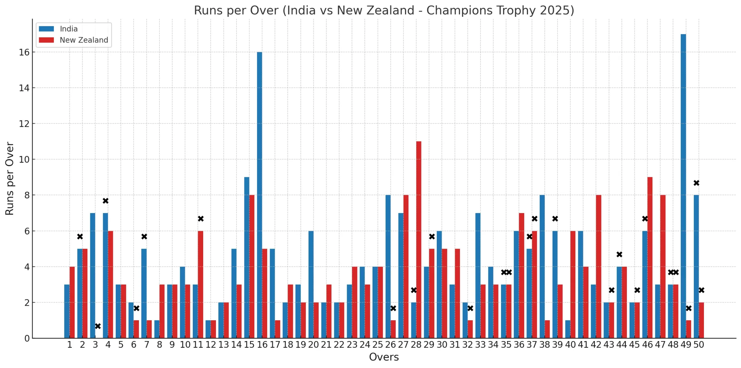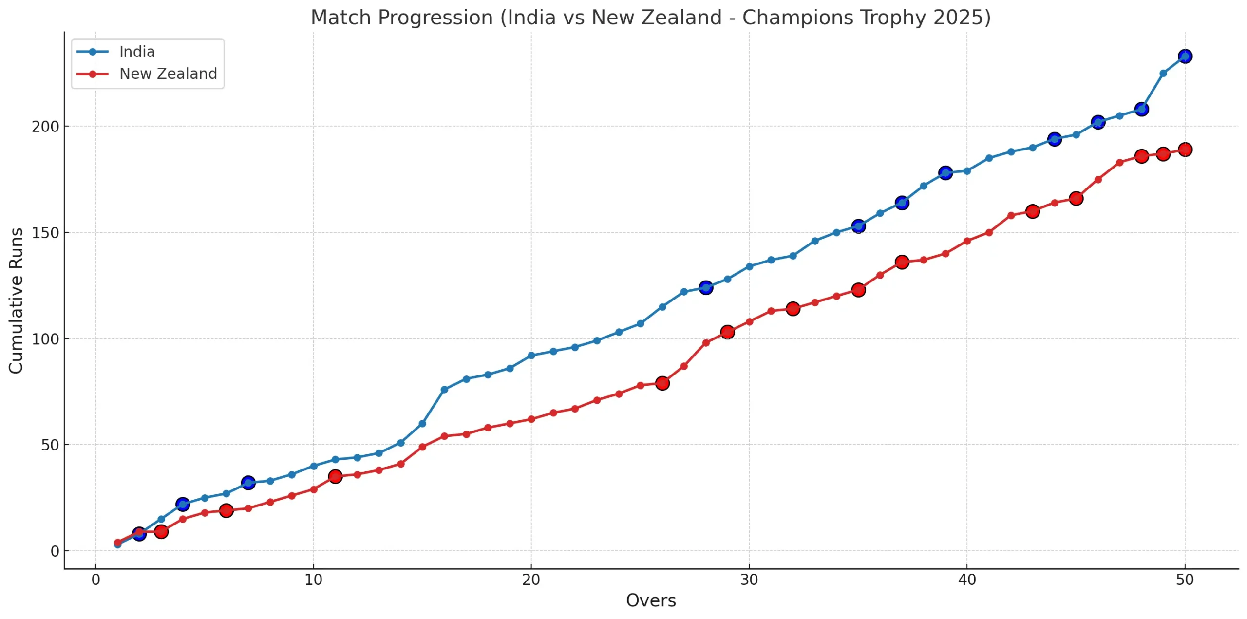| 9:41 pm | India wins comprehensively by 44 runs | Kuldeep Yadav wraps up the innings; NZ 205 all-out |