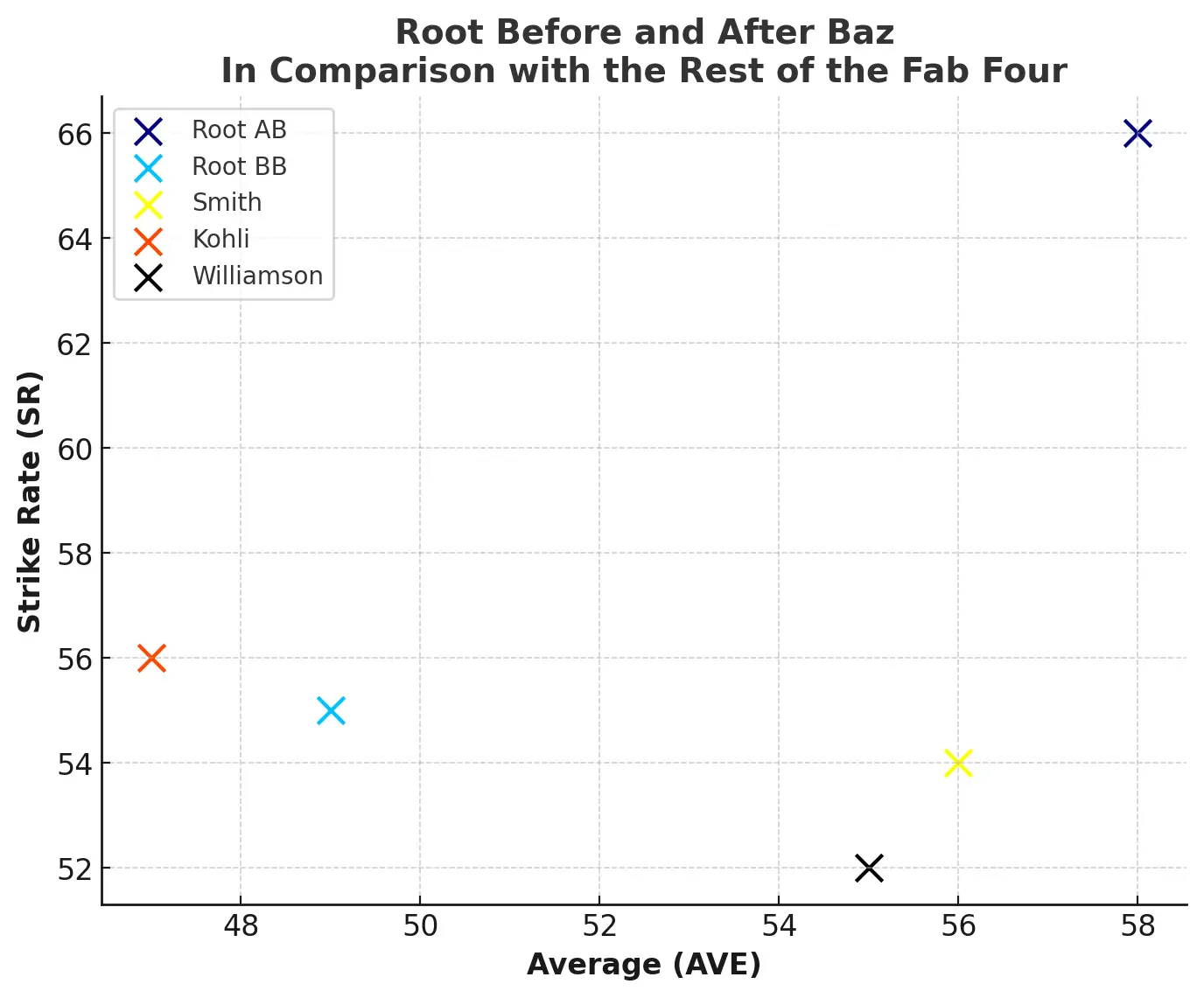Root’s batting evolution outshines his rivals. Smith’s batting average is 57.32, higher than Root’s 50.93. Williamson averages 54.89 but plays fewer Tests. Kohli, now retired, has 8,848 runs. Root’s 104 fifty-plus scores trail only Tendulkar. His Test match strike rate leads the Fab Four due to Bazball. Root shines in tough conditions, averaging 50.21 in South Africa. For context, see the South Africa vs. New Zealand scorecard. His versatility across formats is clear in the India Women vs. England Women scorecard.