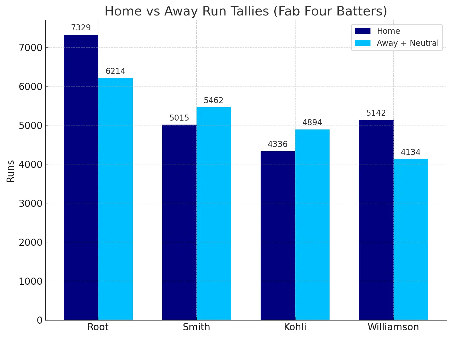 Root’s Fab Four comparison with Smith, Williamson, and Kohli is exciting. He’s played 153 Tests, more than his peers. None of them has crossed 11,000 Test cricket runs. Root’s 7,329 home runs are second only to Ponting. He needs 250 runs to top that list.