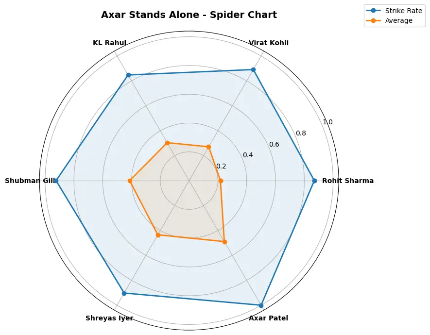 Axar Patel’s No. 5 role invites comparisons to past all-rounders like Yuvraj Singh. Per Wikipedia, Yuvraj, a middle-order star, averaged 36 in ODIs with a strike rate of 87. Axar’s recent spin stats rival this: 40-plus average and 90-plus strike rate. His bowling economy (4.35) echoes Kapil Dev’s control, though Kapil’s pace differed. Unlike Yuvraj, Axar’s spin bowling adds variety, which is a rare dual threat.