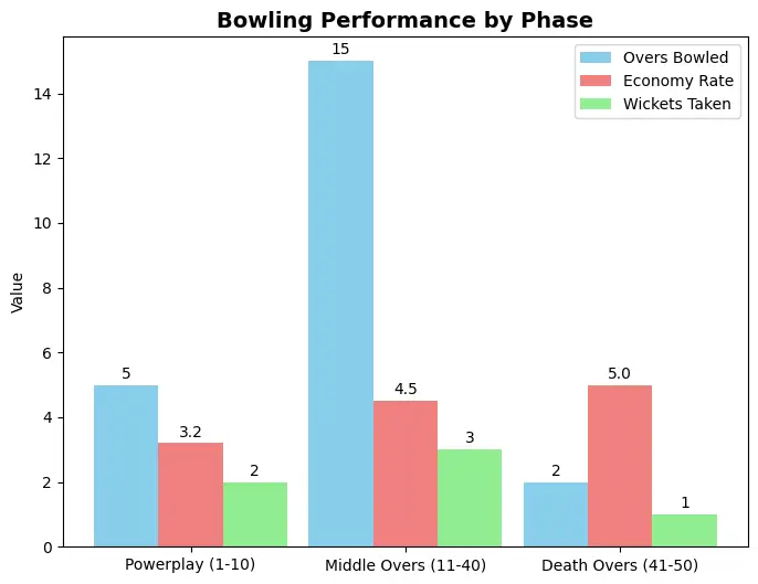 Axar’s bowling economy across different phases of the game during the Champions Trophy 2025
